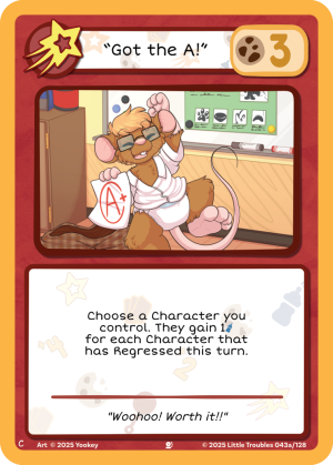 "Got the A!" is a Quick Action card. It was introduced in Back To (Pre)School.