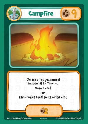 Campfire is a Field card introduced in the mini set Little Troubles Goes To Camp.