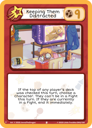 Keeping Them Distracted is a Quick Action card. It was introduced in Back To (Pre)School.