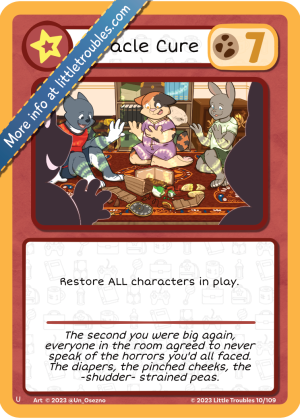 Miracle Cure is an Action card. It was introduced in the Base Set.