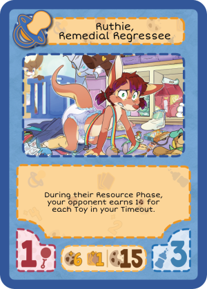 : Once per Build Phase, you may discard a Toy or send a Toy you control to Timeout. When you do, Regress a Character and earn their