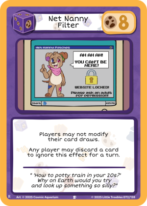 Net Nanny Filter is a Toy card. It was introduced in Back To (Pre)School.