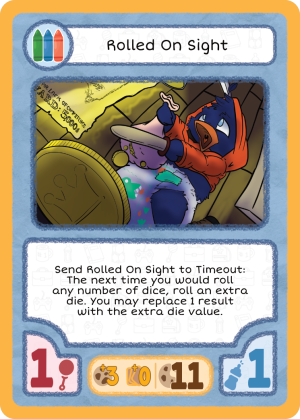 Send Rolled On Sight to Timeout: The next time you would roll any number of dice, roll an extra die. You may replace 1 result with the extra die value.