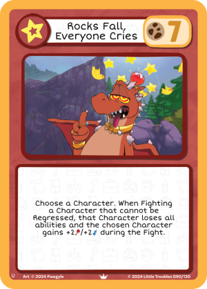 Rocks Fall, Everyone Cries is an Action card. It was introduced in Roll For Regression.