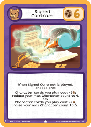 Signed Contract is a Toy card. It was introduced in Roll For Regression.