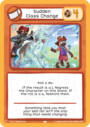Sudden Class Change is an Scene card. It was introduced in Roll For Regression.