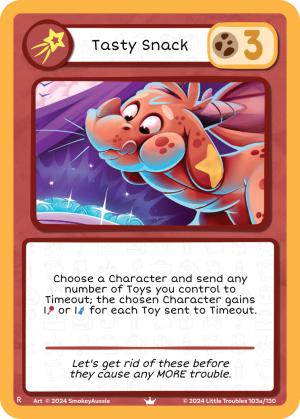 Tasty Snack is a Quick Action card. It was introduced in Roll For Regression.
