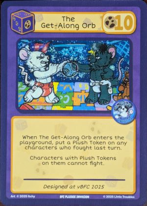 When The Get-Along Orb enters the playground, put a Plush Token on any characters who fought last turn.
