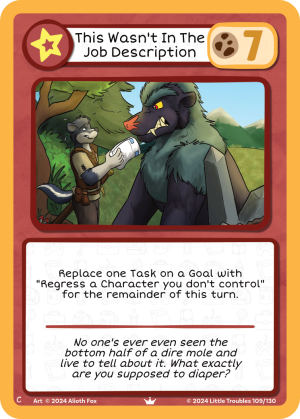 Replace one Task on a Goal with "Regress a Character you don't control" for the remainder of this turn.