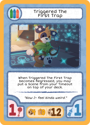 When Triggered The First Trap becomes Regressed, you may put a Scene from your Timeout on top of your deck.