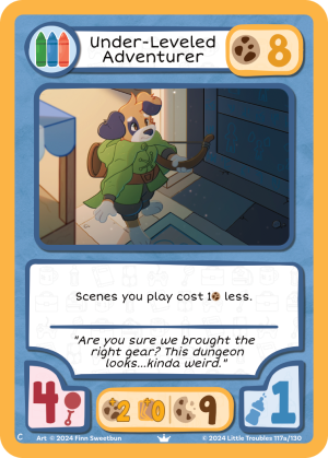 Under-Leveled Adventurer // Triggered The First Trap is a Character card. It was introduced in the Roll For Regression set.