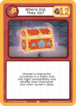 Where Did They Go? is a Quick Action card. It was introduced in Roll For Regression.