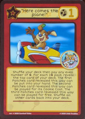 "Here comes the plane!" is a Decisive Action card introduced in the Camp BFC: Double Up! Signing Pack.
