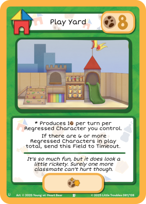Play Yard is a Field card. It was introduced in Back To (Pre)School.