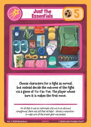 Just the Essentials is a Quick Action card introduced in the mini set Little Troubles Goes To Camp.