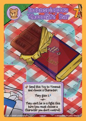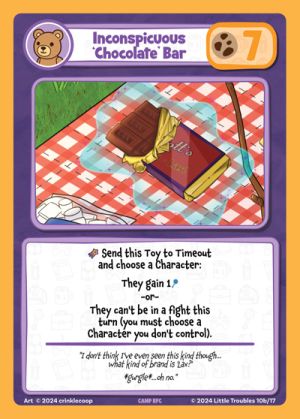 Inconspicuous Chocolate Bar is a Toy card introduced in the mini set Camp BFC.