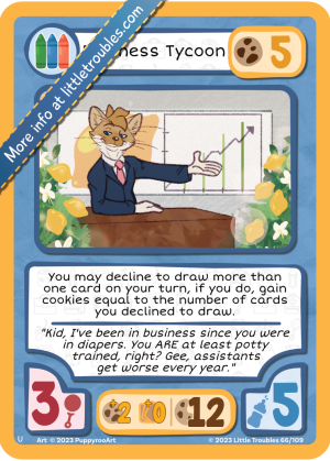 Business Tycoon // Lemonade Stand Owner is a Character card. It was introduced in the Base Set.