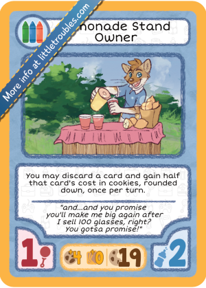 You may discard a card and gain half that cards cost in cookies, rounded down, once per turn.