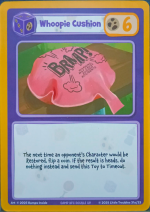 Whoopie Cushion is a Toy card introduced in the mini set Little Troubles Missed The Bus.