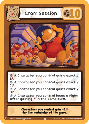 Cram Session is a Goal card. It was introduced in Back To (Pre)School.
