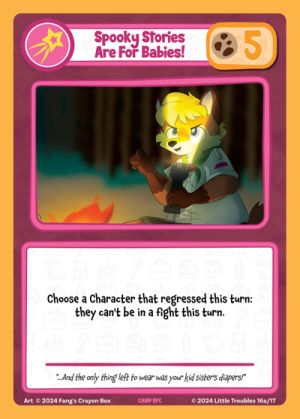 Spooky Stories Are For Babies! is a Quick Action card introduced in the mini set Little Troubles Goes To Camp.