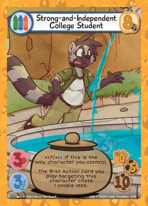 +1 Confidence / +1 Maturity if this is the only character you control. The first Action card you play targeting this character costs 1 cookie less.
