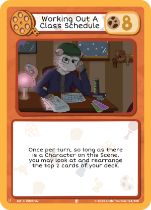 Working Out A Class Schedule is a Scene card. It was introduced in Back To (Pre)School.