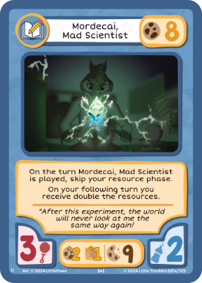 On the turn Mordecai, Mad Scientist is played, skip your resource phase.