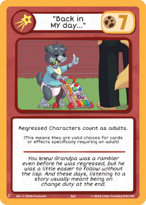 Adult Character gain 2 Confidence and 2 Maturity when fighting regress Characters and vice versa.